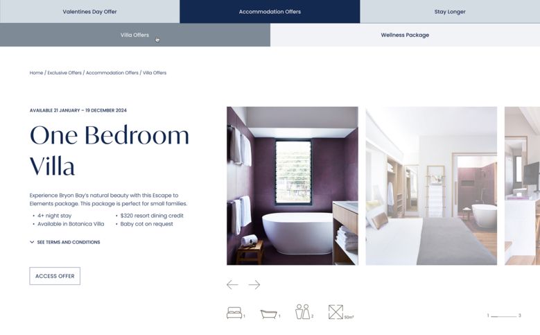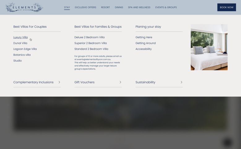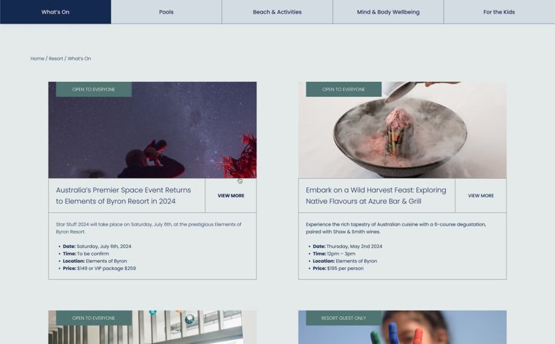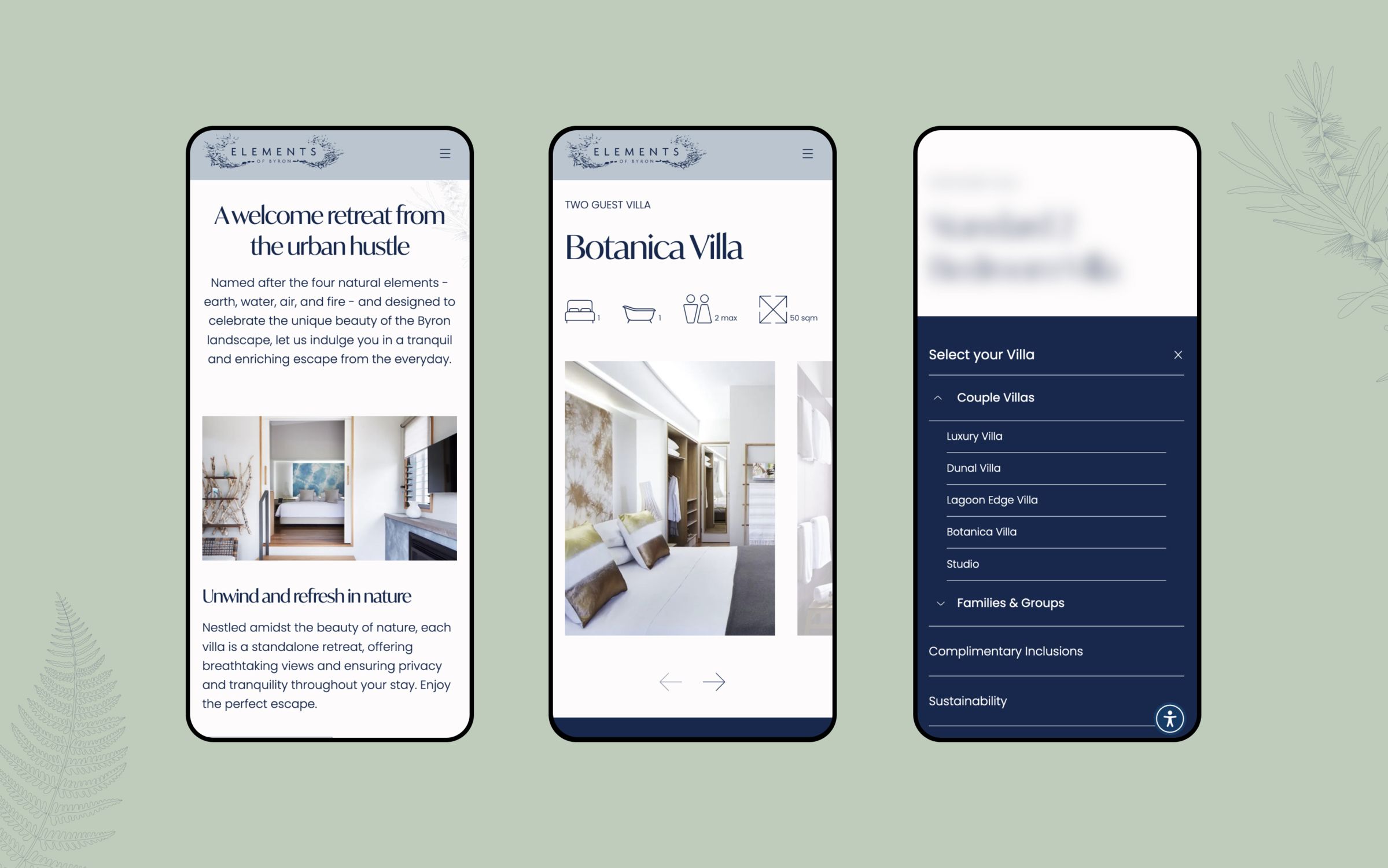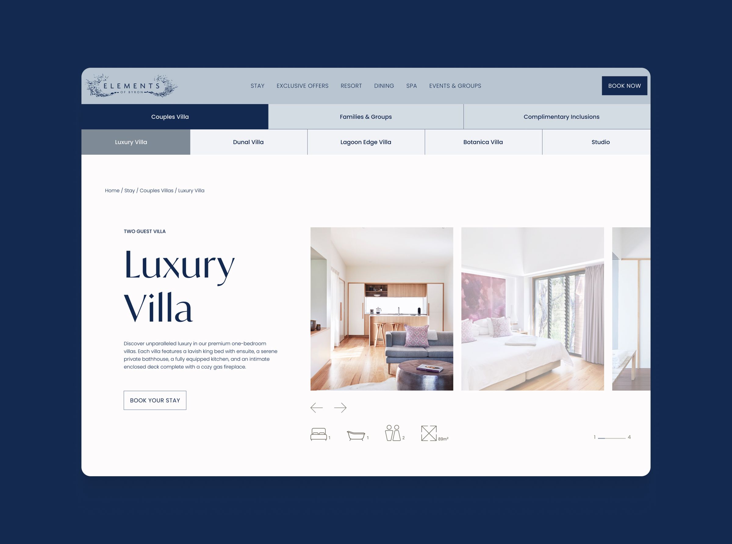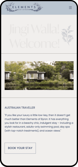 Elements of Byron is a luxury beachfront resort in Byron Bay, surrounded by pristine landscapes and infused with the region’s relaxed, creative energy. The website rebuild presented an opportunity to create a platform that better reflected this unique positioning, improved the guest journey, and gave the EOB team greater control over content. By aligning the online experience with the resort’s character, the goal was to attract guests who truly value what Elements offers — and set clear expectations that encourage satisfaction, loyalty, and return visits.