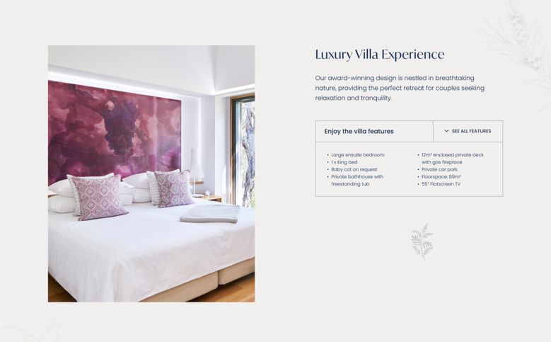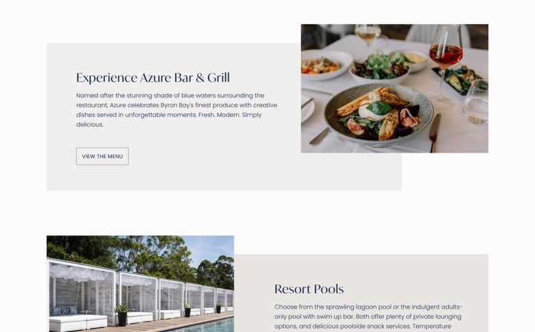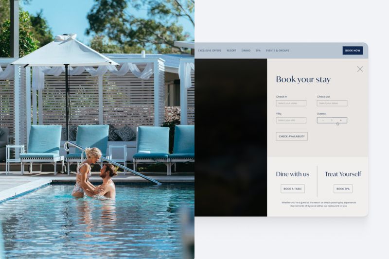 We designed the new site to immerse visitors in the essence of “barefoot luxury” — weaving together visuals, storytelling, and intuitive functionality to reflect the resort’s connection to Byron’s culture and landscape. By reframing the site’s narrative, we spoke directly to the right audience and set clear, authentic expectations ahead of booking.
