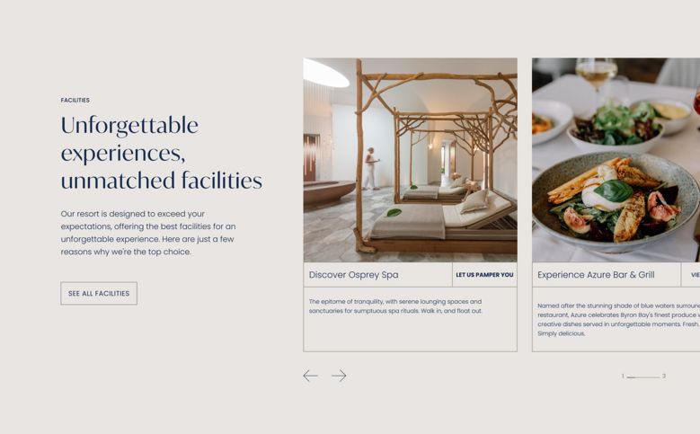 Rather than simply presenting accommodation options, the site now leads with the resort’s unique lifestyle and experiences, positioning these as the reason to book. Each stage of the journey — from initial discovery through to reservation — was streamlined, with dedicated landing pages for key audience segments and visually rich facilities pages designed to spark curiosity and inspire action. This approach not only clarified the resort’s offering but also built a stronger emotional connection with potential guests, helping them envision their stay before they even arrive.
